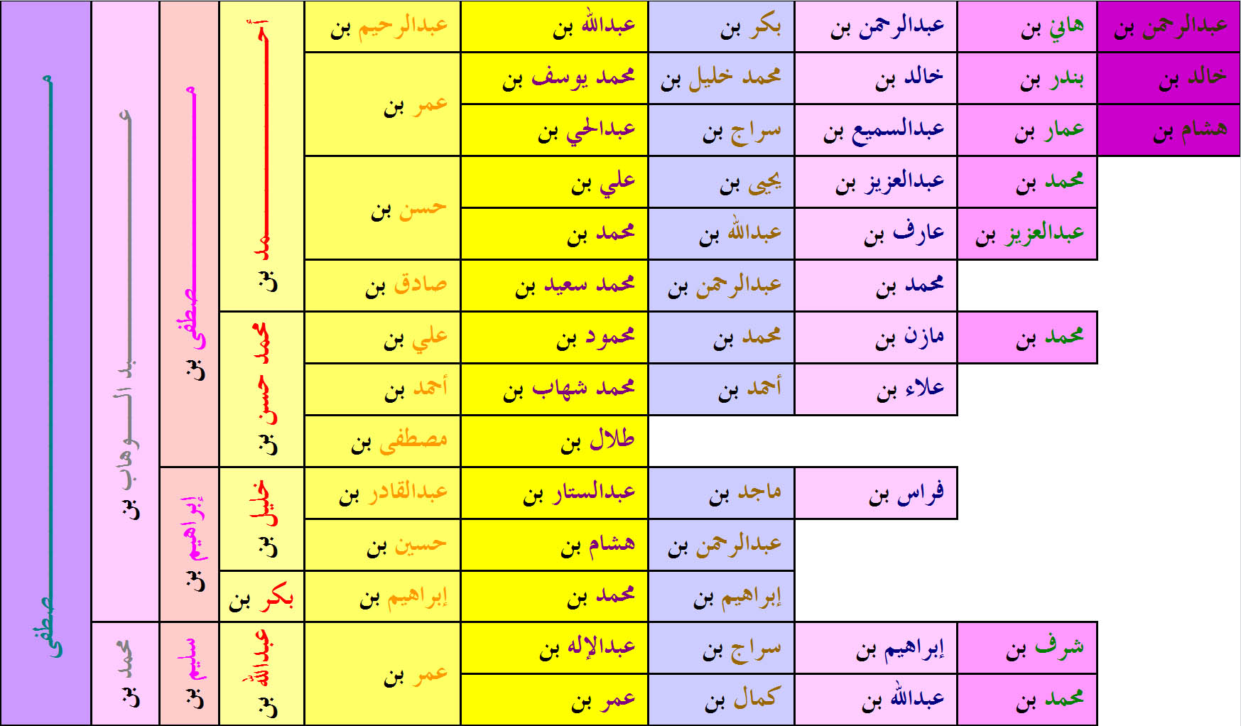 | ع | عبدالرحمن | عبدالله | غ | ف | ك | ل | م | محمد | ن | هـ | و | ي |